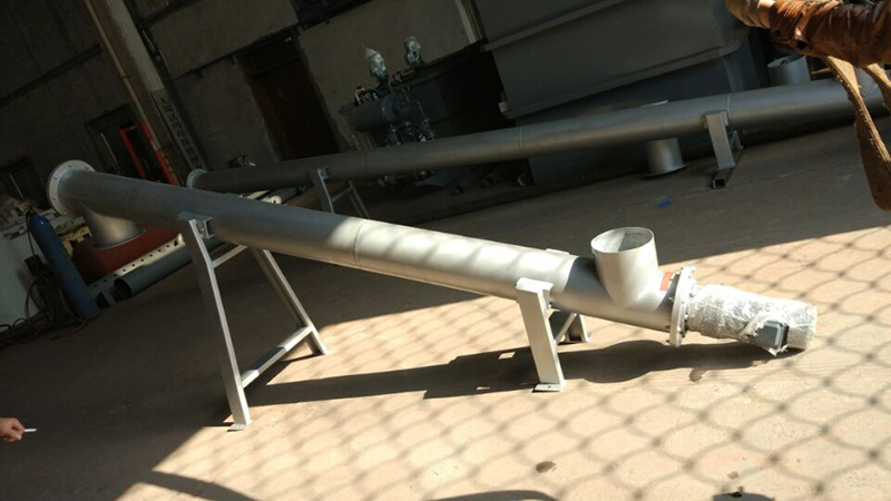 當(dāng)螺旋軸轉(zhuǎn)動時,由于物料的重力及其與槽體壁所產(chǎn)生的摩擦力,使物料只能在葉片的推送下沿著輸送機(jī)的槽底向前移動,其情況好像不能旋轉(zhuǎn)的螺母沿著旋轉(zhuǎn)的螺桿作平移運(yùn)動一樣。物料在中間軸承的運(yùn)移,則是依靠后面前進(jìn)著的物料的推力。所以,物料在輸送機(jī)中的運(yùn)送,完全是一種滑移運(yùn)動。為了使螺旋軸處于較為有利的受拉狀態(tài),一般都將驅(qū)動裝置和卸料口安放在輸送機(jī)的同一端,而把進(jìn)料口盡量放在另一端的尾部附近。 旋轉(zhuǎn)的螺旋葉片將物料推移而進(jìn)行輸送,使物料不與螺旋輸送機(jī)葉片一起旋轉(zhuǎn)的力是物料自身重量和螺旋輸送機(jī)機(jī)殼對物料的摩擦阻力。葉片的面型根據(jù)輸送物料的不同有實體面型、帶式面型、葉片面型等型式。螺旋輸送機(jī)的螺旋軸在物料運(yùn)動方向的終端有止推軸承以隨物料給螺旋的軸向反力,在機(jī)長較長時,應(yīng)加中間吊掛軸承。